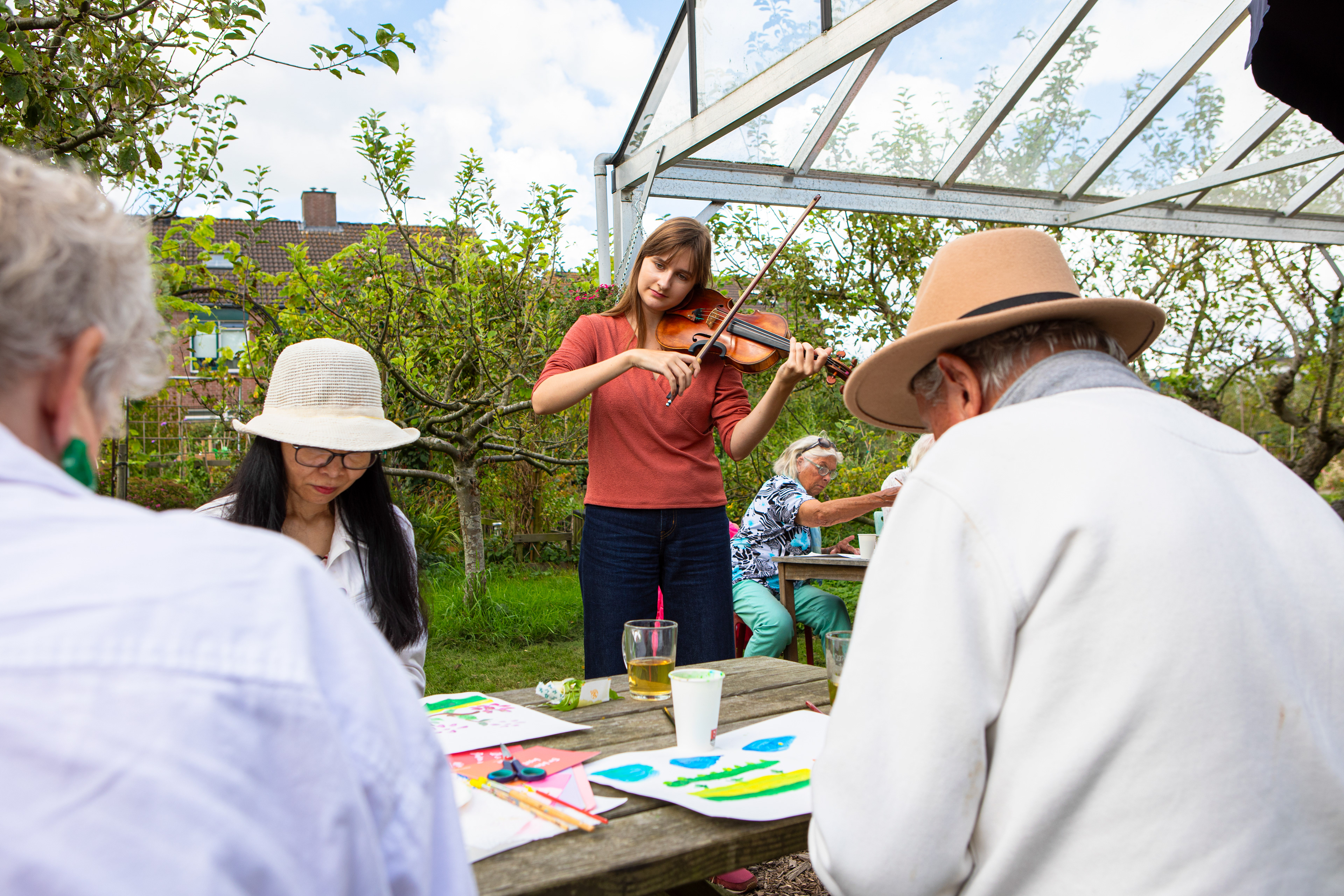 In this workshop, music and art come together in a unique way. As I play the violin live, I invite the participants to let the music inspire their brushstrokes, turning each melody into colour and emotion on the canvas. It’s a relaxed and personal creative process, with no rules – just the freedom to explore how the music moves you. The result is a natural blend of sound and visual expression, where each participant’s interpretation becomes a reflection of their own connection to the music.